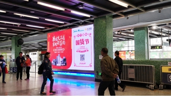 深圳虎童科技有限公司是深圳地铁4号线智能高清互动大屏媒体的独家运营商,虎童科技所运营的地铁大屏媒体的屏均面积达到10平米方以上,画面严格遵循16:9的黄金比例,在地铁场景中位置选设力争最佳,居于人流必经的站厅要点,实现完美的视觉饱和覆盖,视觉冲击力极为丰富,观看效果悦目舒适,为国货翘楚美的电器大张声势,共同为"中国制造"发声。