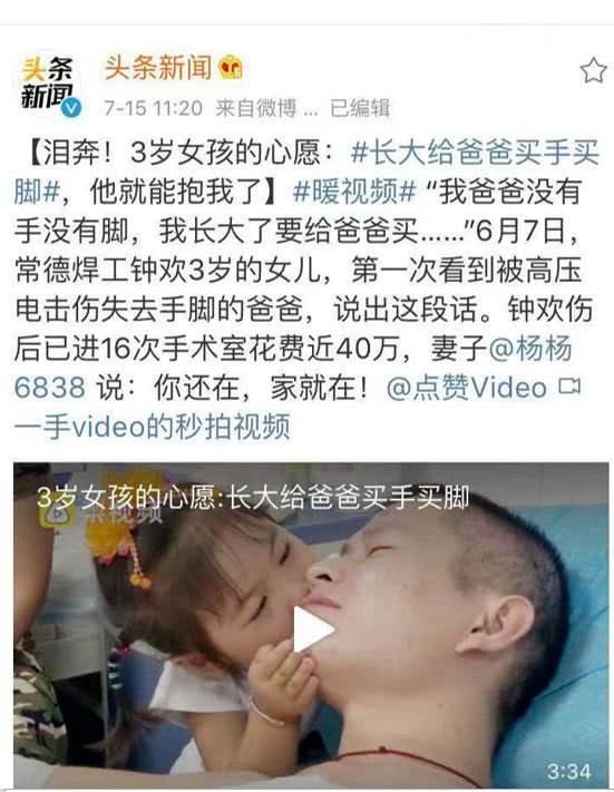 原来,孩子的爸爸在工作中被高压电击伤,保住了性命却失去了四肢。