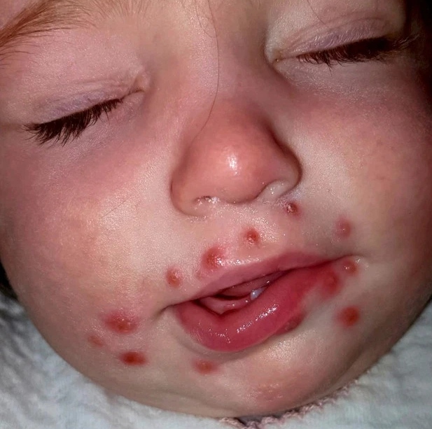 一名患有唇疱疹的亲戚亲吻了她的女婴并让她与致命的疱疹病毒作斗争后,一名妈妈警告其他人保持警惕。