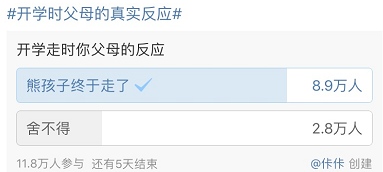 在一项近12万人参加的投票中,有8.9万人挑选的是“熊孩子总算走了”