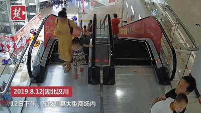 事发现场看见女童手臂被卡后倒地,黄衣女子火速回身拉扯,可是电梯还在运转,看到状况不对劲,一名过路市民拉停扶梯无果后,指挥扶梯下方一名女子火速按下了紧迫制动按钮。