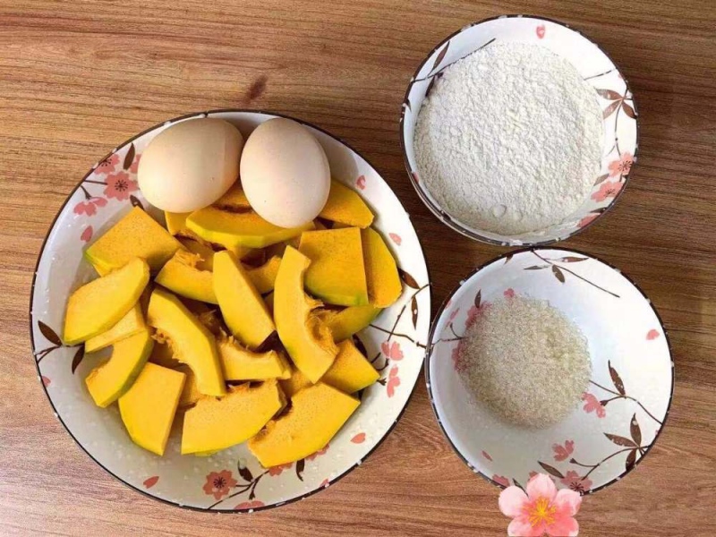 1、预备食材:南瓜、鸡蛋、面粉、白糖