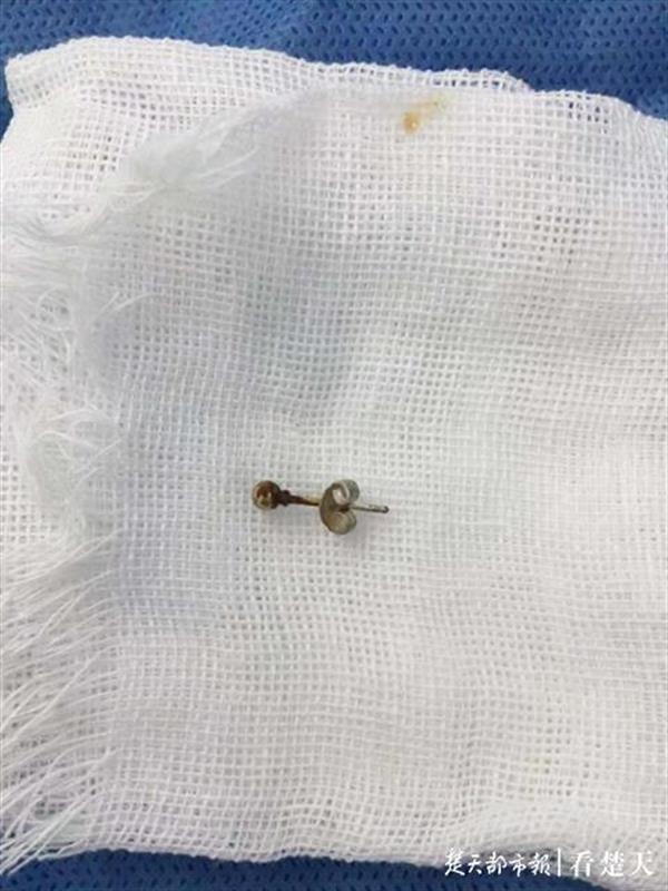 看到取出来的东西,妈妈茅塞顿开,本来这是她一个月前丢失的耳钉。其时翻遍了抽屉都没找到,没想到掉在了床上,被孩子摸到吞进肚里。