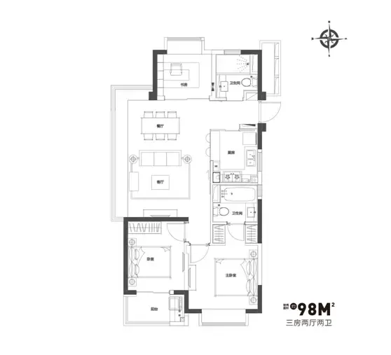 ——建筑面积约98㎡超广角三房