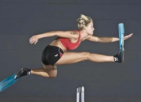 第一项,潜水员跨栏速度之最。这第二项纪录大约用时19秒。这位来自新西兰的威客斯尔,用19.278秒成了穿潜水脚蹼跑100米跨栏最快者。