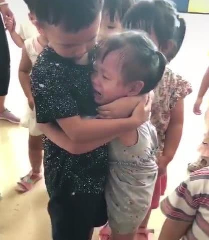妹妹听完,哭得愈加难过了,这时,哥哥用手摸着妹妹的头,安慰着哭泣的妹妹。一旁的教师被这兄妹的行为感动了,便拍下了视频,纪录下这温馨的一刻。