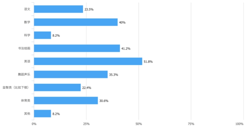 在参加本次查询的用户中,有70%以上的孩子除了正常的校内学习外,还需求参加爸爸妈妈给报的课外教导班。