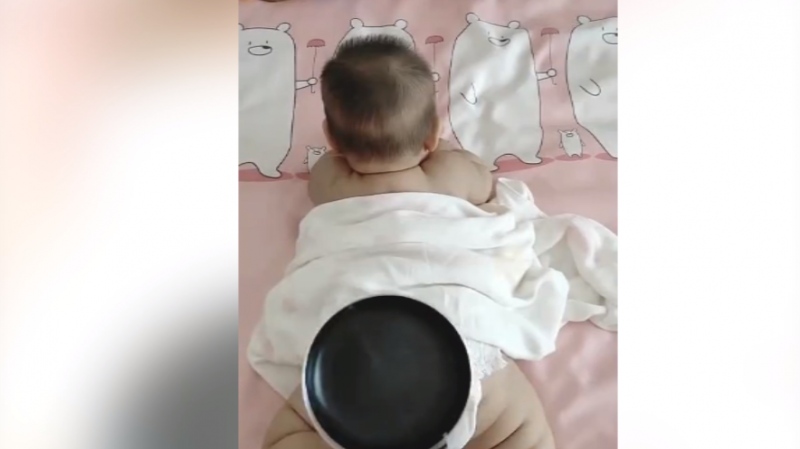 咱们能够看见妈妈这时分趁着爸爸出门了就拿起了自己的小小平底锅放在了孩子尿不湿的方位,看来现已觊觎了很久了,爸爸不在家的时分总算能够皮一下了。妈妈手里拿着这个平底锅对这孩子的屁屁先是旋转抚摸了一圈,后来就开端用平底锅悄悄拍打了起来。