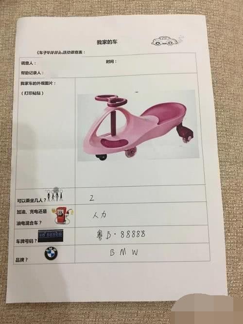 近邻小新的女儿洋洋,本年已经在小区里的幼儿园读中班了,幼儿园教师喜爱给孩子留一些作业。昨日小新像平常相同,陪女儿一同写作业。可是当小新看到女儿的作业时很惊讶,由于教师给女儿留的作业是“我家的车”,女儿需求将自己家车的填进表格。
