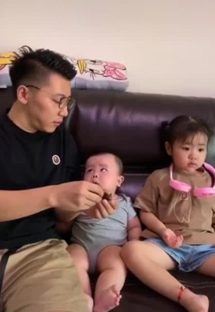 爸爸又剥了一颗,送入了姐姐口中。弟弟一脸失落地看着爸爸,幽怨的目光实在太可爱了。
