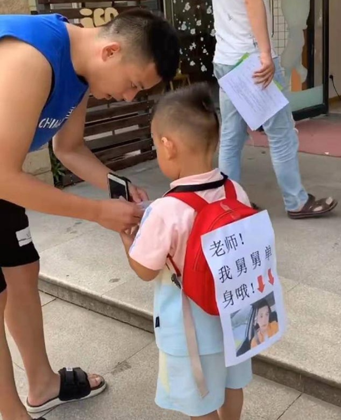 他居然想到让小外甥当这个小媒妁。他突发奇想,将自以为很帅的一张相片洗出来贴到纸上,并在纸上写上几个大字:教师,我舅舅独身哦;还用赤色箭头指向自己那张帅相片;惧怕有教师有意向但不知怎样联络自己,还让外甥带上了自己的微信二维码。