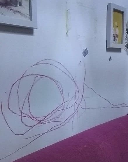 每个孩子都有一个“涂鸦期”,在家里的白墙上乱写: