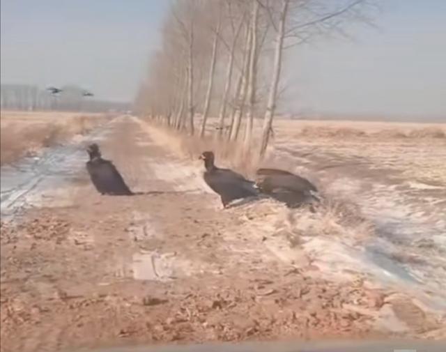 老鹰和秃鹫等大型猛禽很少会被我们近距离目睹,因为这种鸟类飞行的时候高度很高,通常都在数千米的高空中,落脚的地方通常也是比较偏僻的悬崖峭壁或者深山老林中,但近日有一位网友发布了一段视频,让我们得以近距离地观测这种巨鸟。视频上面显示网友开的车的前方有三只体型巨大的黑鸟,像三只大黑狗一样蹲在路边,很显然被惊讶到了,或是从来没有见过这么大的鸟吧,车速慢了下来,很怕惊到它们,渐渐靠近时三只大鸟腾空而起,巨大的翅膀展开有两米多长,那气势真是惊人,如果不是开着车身在车中的话,骑车或者步行,遇到这样三只大鸟,一个人很可能会被吓得不敢前进了。
