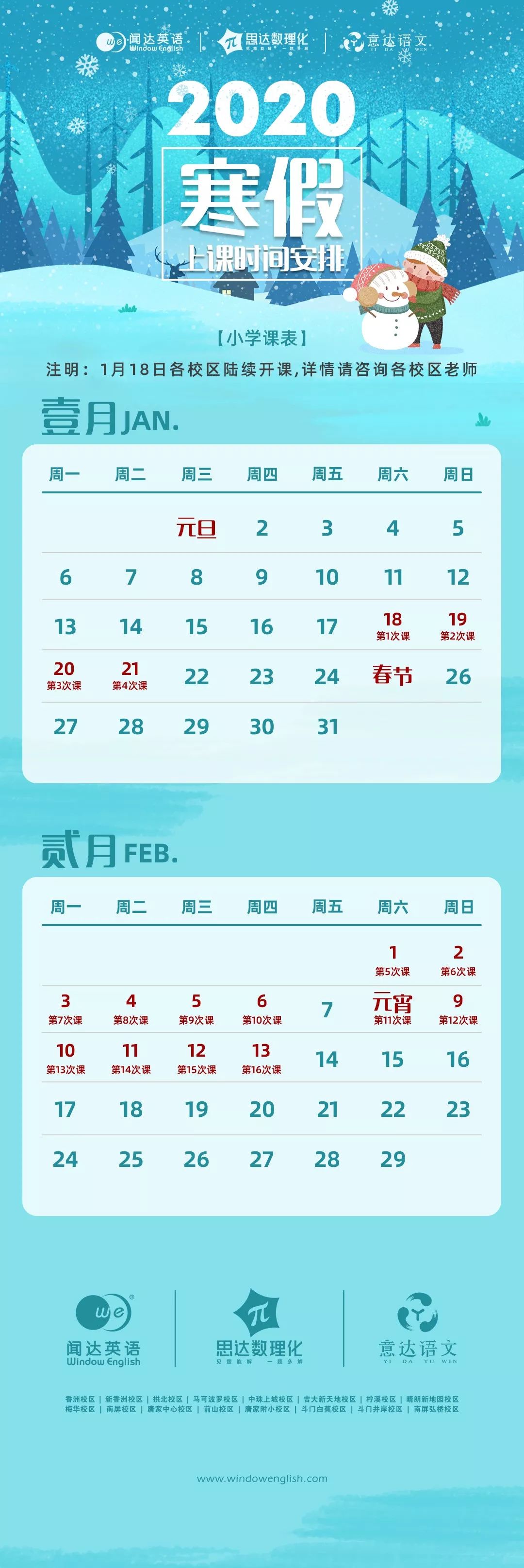 以上便是显达2020年寒假上课时刻表~