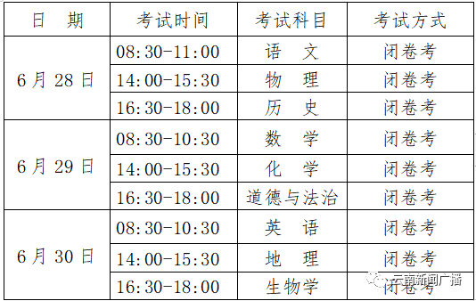 2020年云南省初中学业水平考试具体时刻组织如下: