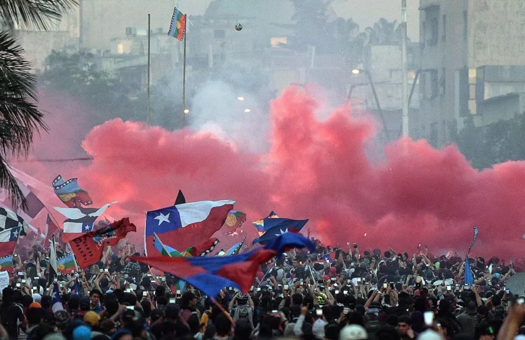 这是2019年11月8日,示威人群集合在智利首都圣地亚哥市中心。公交体系票价上涨在智利引发了持续社会动乱。新华社发(豪尔赫·比列加斯摄)