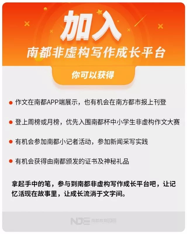 这是南都非虚拟写作生长渠道推出的第八期征文。南都非虚拟写作生长渠道自2019年9月10日上线以来,已推出七期征文。每期征文均收到上千篇学生来稿,掩盖广东省内广州、深圳、佛山、东莞、珠海、中山、惠州、江门等地校园,广受师生好评。到现在,短短三个多月时刻,已收到征文近八千篇。