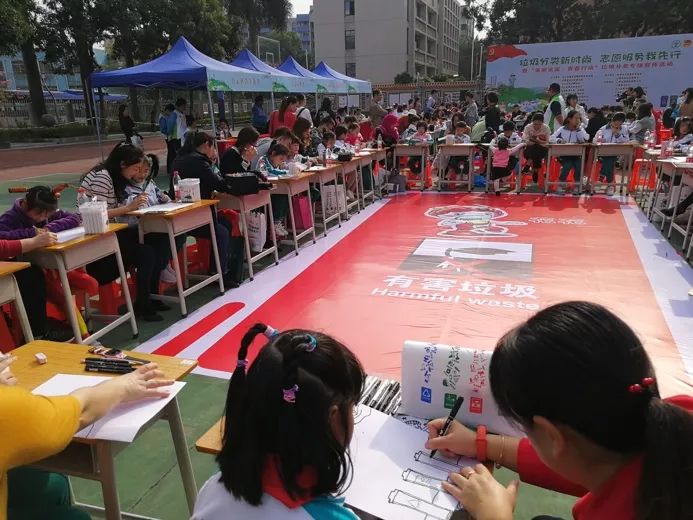 2019年12月31日下午三点,京溪街培英试验中学运动场上聚集了上百对亲子,他们在携手作画,手绘废物分类新时髦,用芳华的举动支撑京溪的废物分类作业。活动现场,AR互动,废物分类小游戏、各个特征宣扬货摊招引了许多邻居参加。